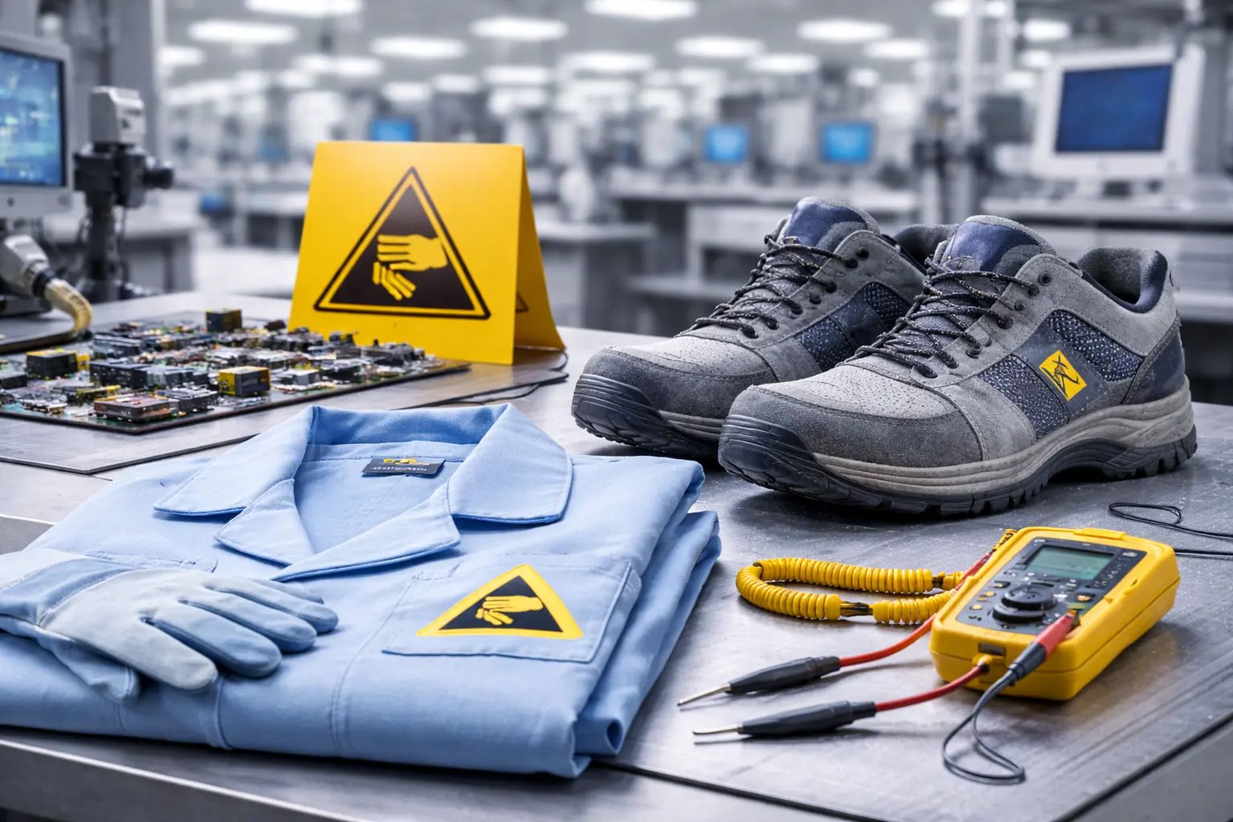 - Используйте ESD-обувь, подходящую под тип пола и требования участка.