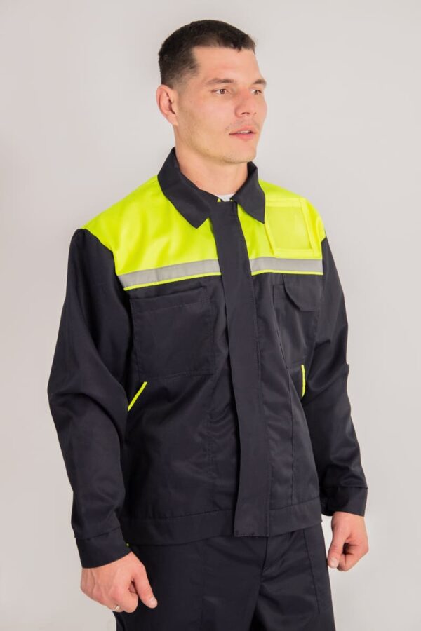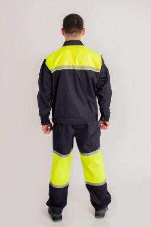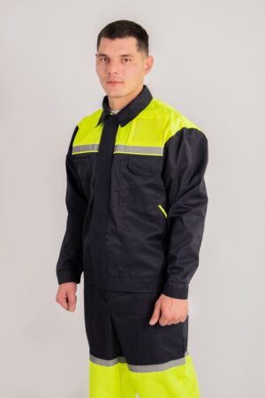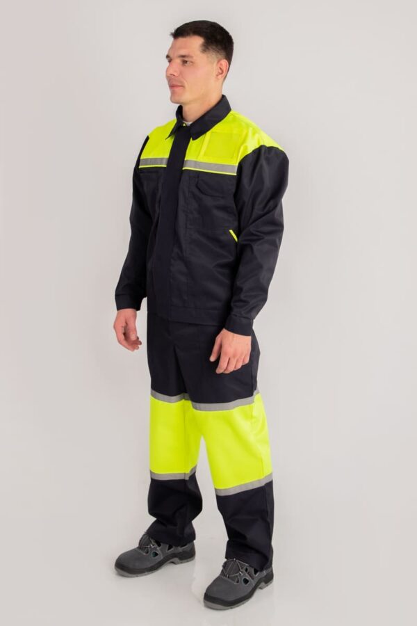 Костюм может комплектоваться как брюками, так и полукомбинезоном.