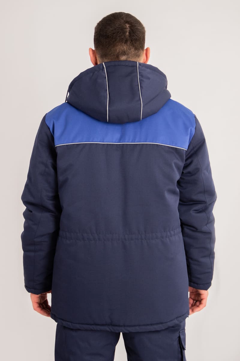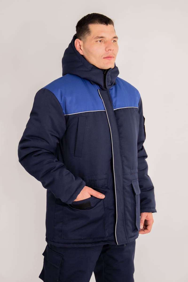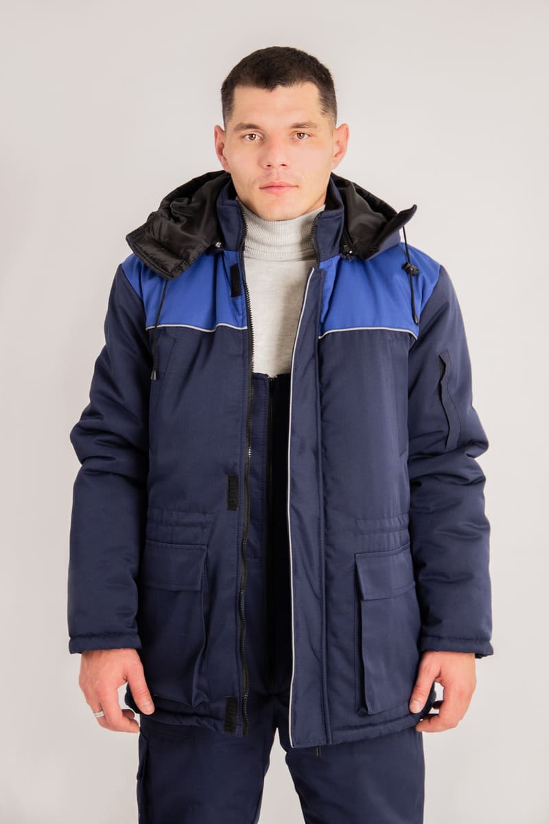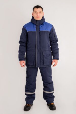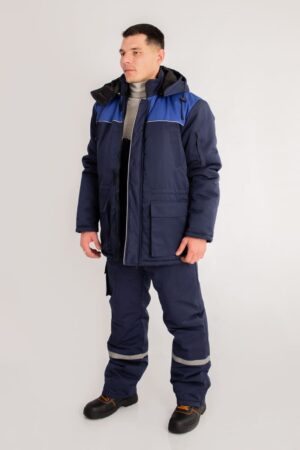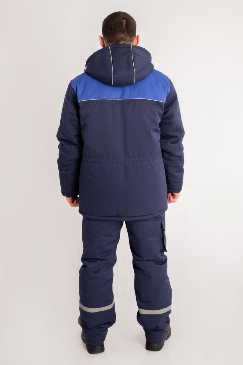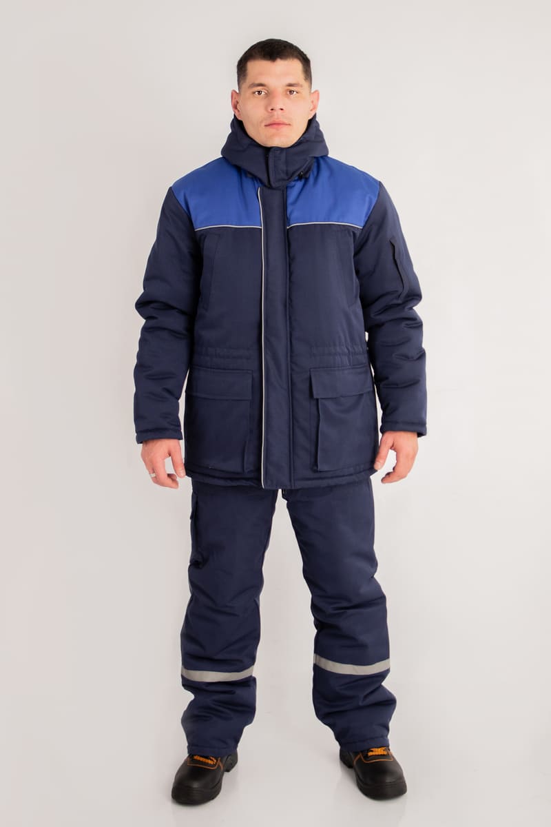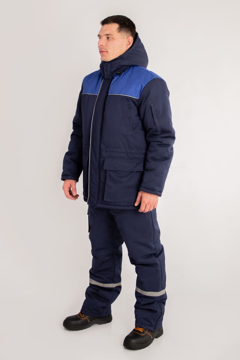 Цвет основной ткани и контрастной отделки и состав ткани по желанию заказчика. Костюм может комплектоваться как брюками, так и полукомбинезоном.
