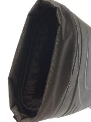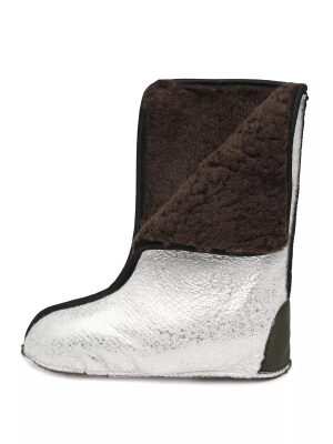Внутри — двухслойный съёмный чулок: фольгированное полотно отражает тепло, а натуральный мех сохраняет комфорт даже при длительном нахождении на холоде. Дополнительная надставка на шнуровке позволяет регулировать посадку и защищает от попадания снега и влаги сверху.