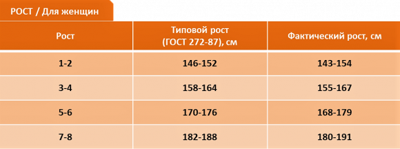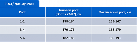 В таблице указаны основные размерные признаки типовых фигур мужчин и женщин: обхваты груди, талии и бёдер.