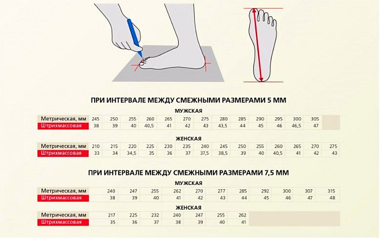 Таблица соответствия размеров спецобуви составлена отдельно для мужских и женских моделей.